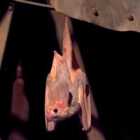This story concerns gabagurda Spotted Nightjar (Eurostopodus argus) and migalyaji Bat (species unknown, but possibly the Ghost Bat Macroderma gigas). These two, who are ngadhal ‘same sex parallel cousins’, kill a man called Bibijungurru, boss of all the people. After some travels they secretly spear him while he is lying in his bough shade. They are caught by the group and punished for their misdeeds by being speared and beaten with boomerangs and women’s yamsticks. Their legs are broken so that now they both lie on the ground when they land and they must both drink water on the wing, rather than being able to stand and drink like other animals.